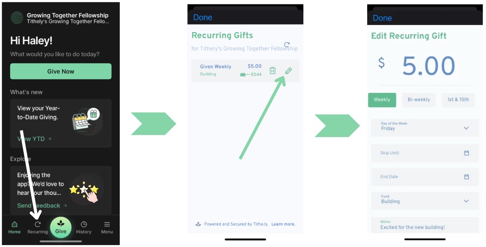 Creating a Recurring Gift on App