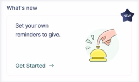 Toggle the Giving Reminders switch to ON. Once permissions are granted, you will see a control for giving reminders in your notification center. Switch it to ON. The default schedule is set to Every Sunday at 8:00 AM.